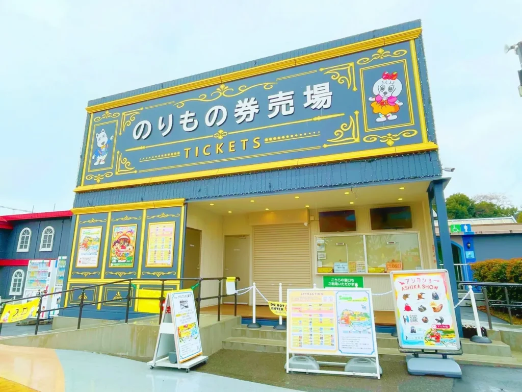②スカイゲート入園口横のインフォメーションもしくはお化け屋敷ひゅ~どろ前のりもの券売場で、観覧車優先乗車権付のりもの券と園内飲食券をお受け取りください