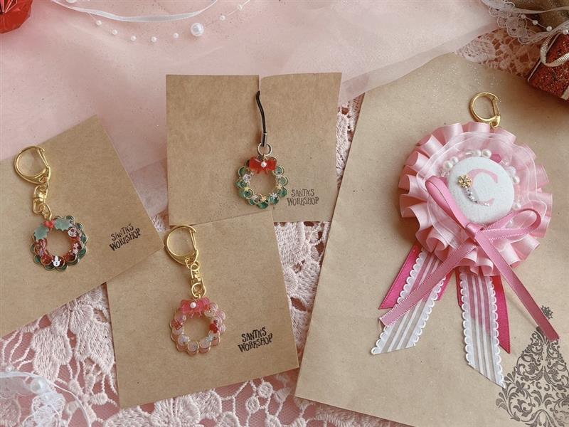 プレゼントにぴったりな、クリスマス限定のUVレジンキーホルダーやロゼットキーホルダーづくりが体験できるワークショップを開催します。自分だけのオリジナルグッズをつくりましょう!