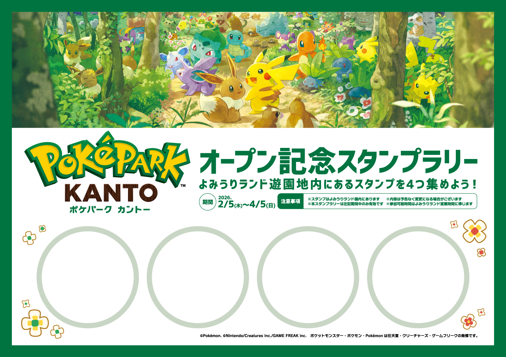 『ポケパーク カントー』が2/5(木)によみうりランド内にオープンすることを記念し、2/5(木)~4/5(日)の期間、ラリーイベントや特別装飾を実施します。園内一体となって『ポケパーク カントー』のオープンを盛り上げます!