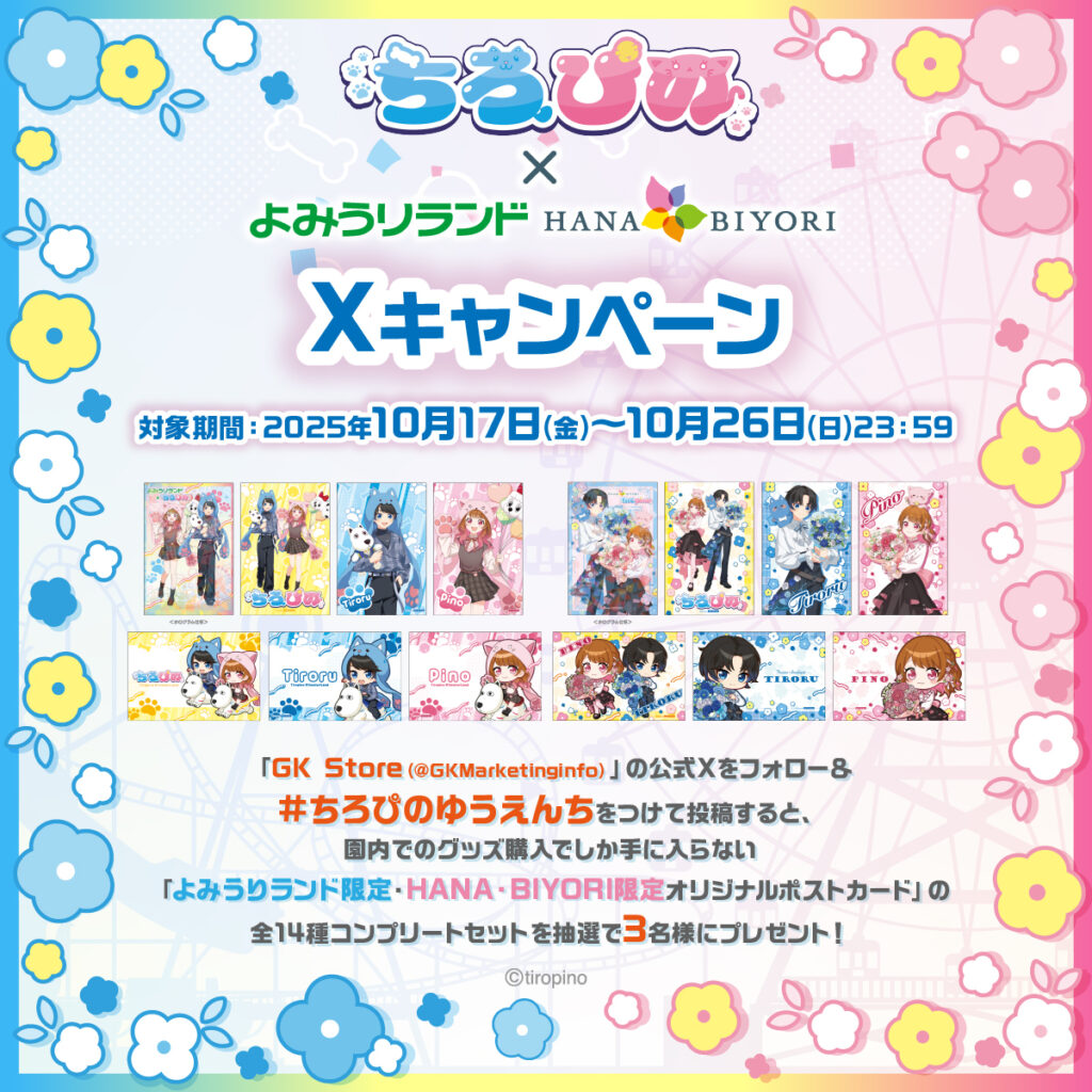 コラボグッズ購入特典でしか手に入らない「よみうりランド限定・HANA・BIYORI限定オリジナルポストカード」の全14種コンプリートセットを抽選で3名様にプレゼント!
