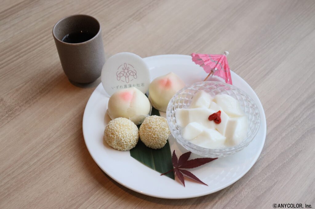 メニュー:桃饅頭、ごま団子、杏仁豆腐、お茶