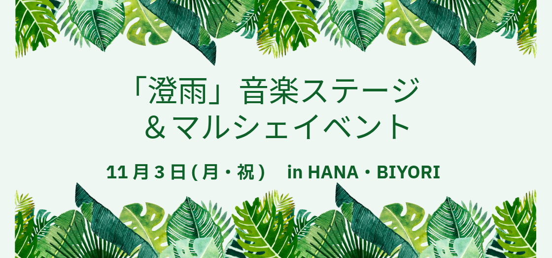 「澄雨」の音楽ステージやワークショップ、アクセサリー・雑貨などの販売を楽しめるマルシェイベントをHANA・BIYORI館内で開催いたします!