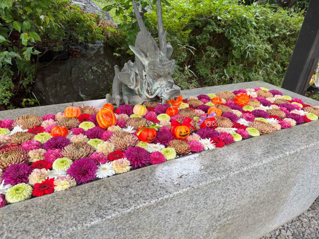 HANA・BIYORIの名物「花手水」もハロウィン仕様に衣替えしました。