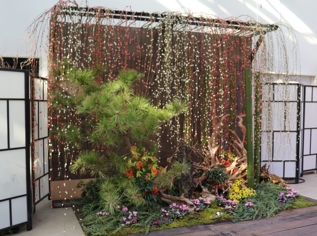 期間中、HANA・BIYORI温室内に飛騨高山の伝統文化「花餅」を使ったお祝いフォトスポットが登場。