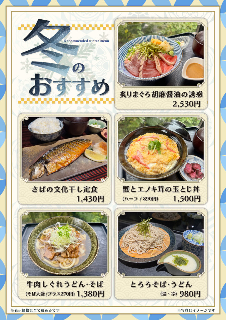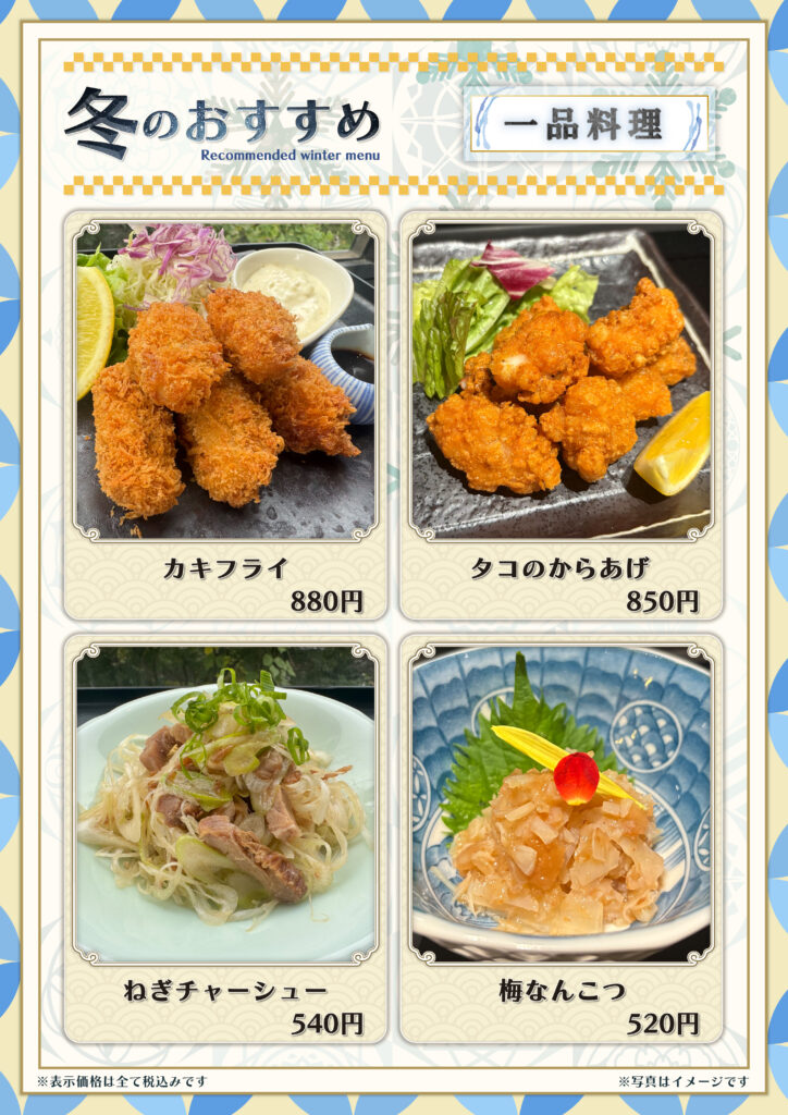※仕入れ等の都合により、ご提供ができなくなるメニューや一部ご提供内容の変更が生じるなど、予告なく変更する場合がございます。あらかじめご承知おき願います。