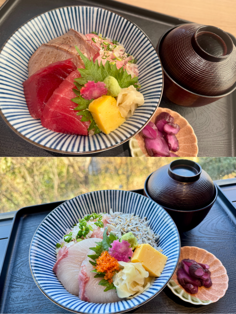 天然まぐろの中とろと赤身を贅沢に使い、香ばしく炙った本まぐろとなめらかなねぎとろを盛り込んだ贅沢丼です。(赤だし・漬物セット)とろける脂、濃厚な旨み、炙りの香り。まぐろの多彩な味わいをお楽しみください。