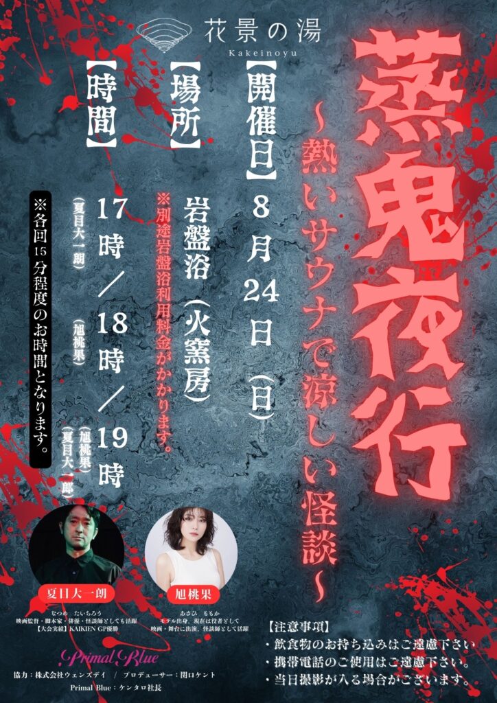 7/20(日)に初開催した岩盤浴エリアでの怪談イベントが好評につき、第二弾開催決定しました。