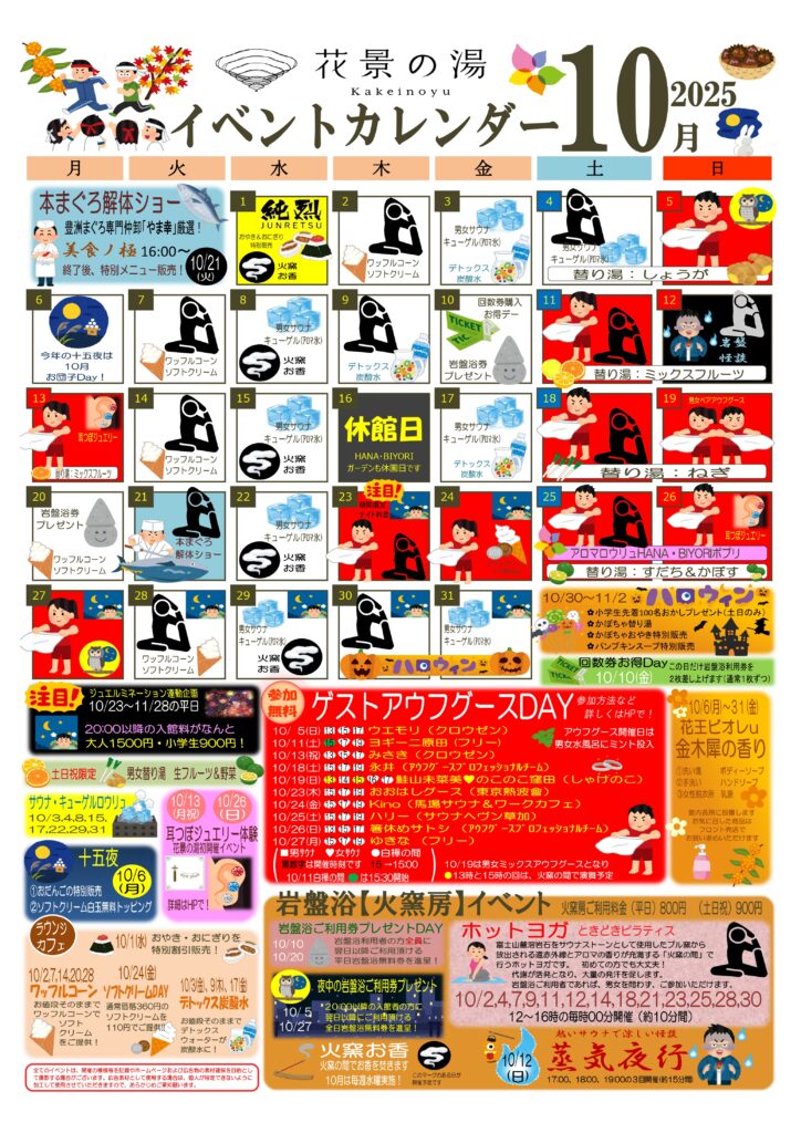(火窯の間開催:各回定員50名様 2F岩盤浴受付での予約が必要です)