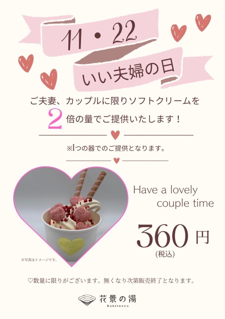 【期日】11/10(月)、11/17(月)1Fラウンジカフェで、通常360円で販売しているソフトクリームを110円の特別価格でご提供!