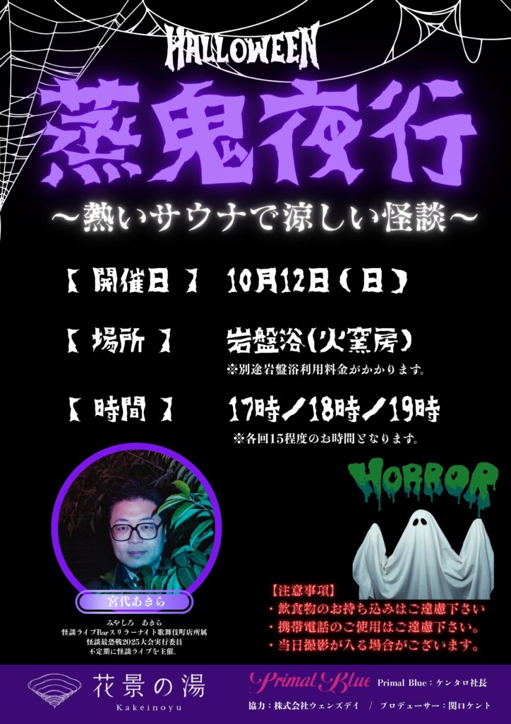 岩盤浴をご利用の方はどなたでも参加できます。「熱いサウナで涼しい怪談」という不思議な体験をこの夏ぜひどうぞ!