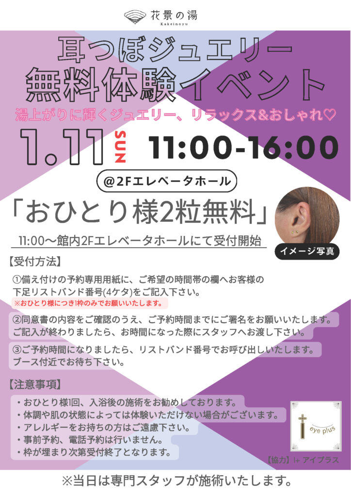 16:00~16:30花見ラウンジにて開催(岩盤浴着を着ている方は2回挑戦)