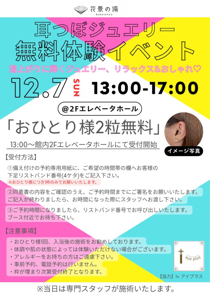 16:00~16:30花見ラウンジにて開催(岩盤浴着を着ている方は2回挑戦)
