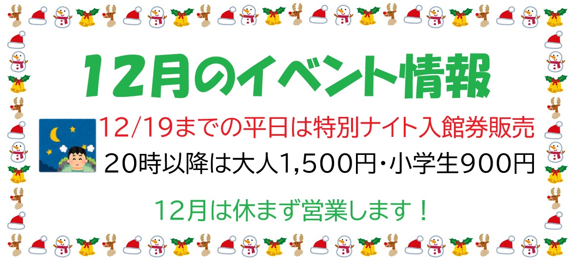 12/1(火)、12/27(日)、12/9(火)、12/16(火)、12/20(土)、12/23(火)