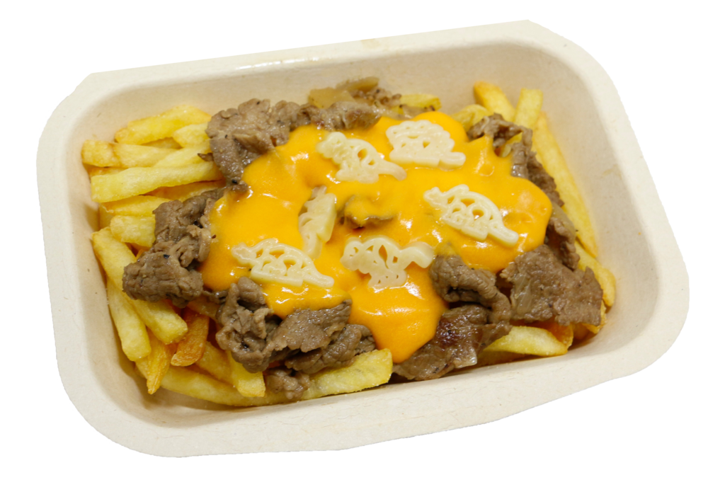 恐竜マカロニ+ポテト+牛肉+チーズソース