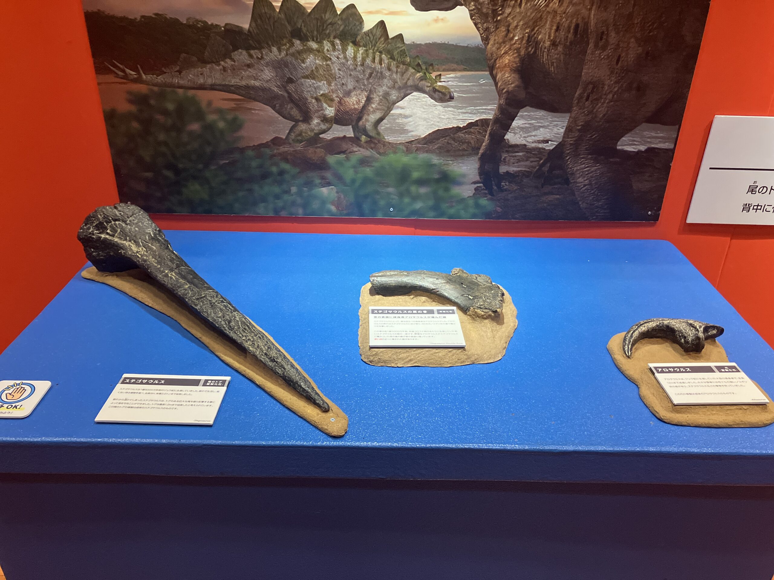 パキケファロサウルスの頭部やステゴサウルスの肩甲骨など、ホンモノの化石に実際に触れることができます。