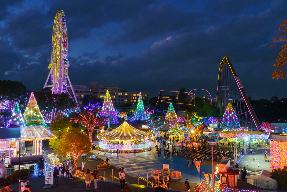 ジュエルミネーションで光り輝く遊園地全体はもちろん、天気のいい日には都心の高層ビル群まで一望できます。