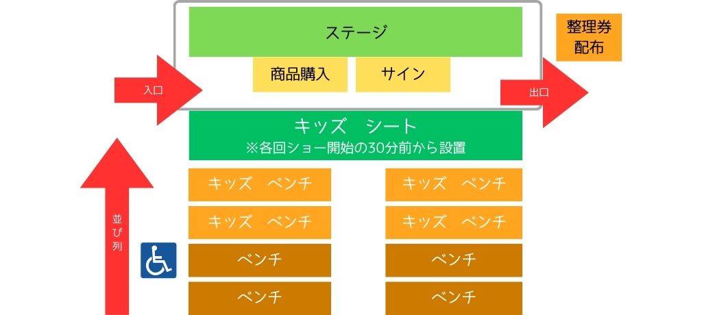 ②ショー終了後、整理券に記載のアルファベット順にお呼び出しします。