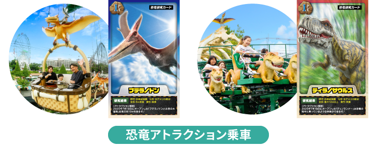 恐竜アトラクション乗車で「恐竜研究カード」を配布いたします。(絵柄固定)