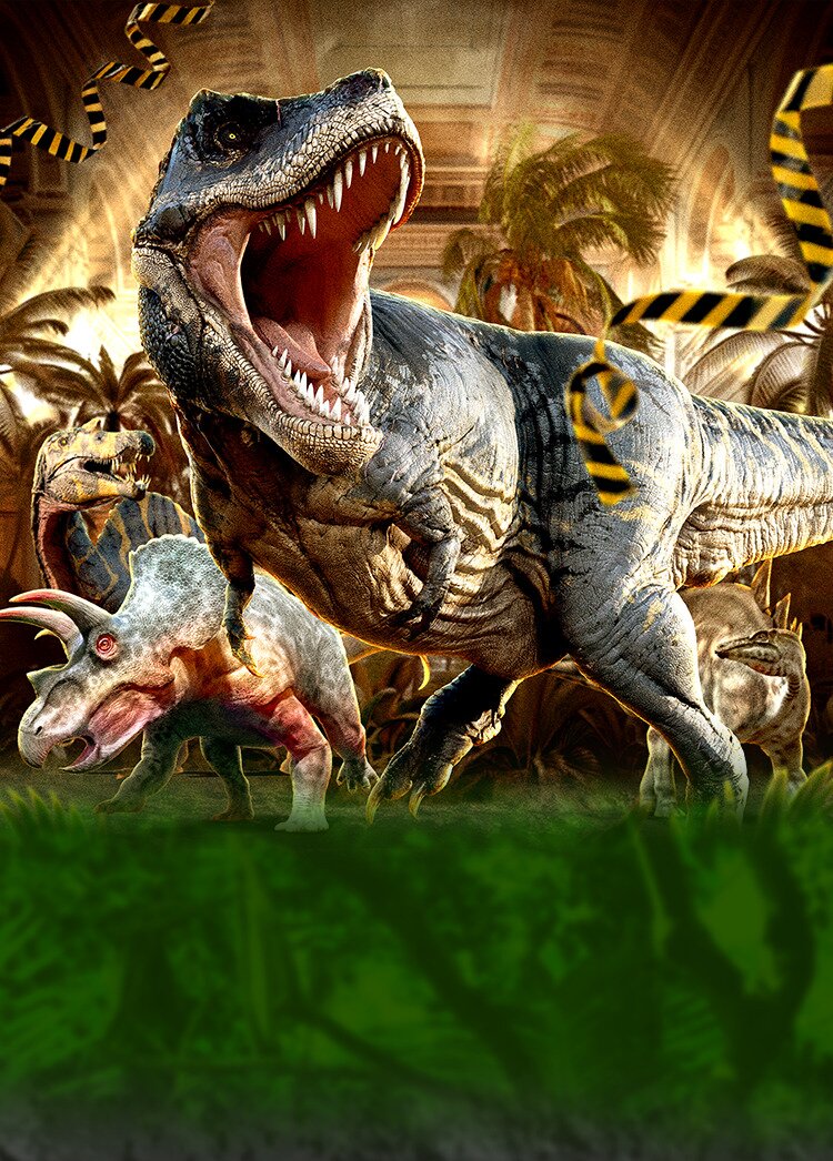 恐竜と一緒に園内を歩くお散歩や大迫力のショーを開催します!リアルなティラノサウルスが遊園地に襲来!?