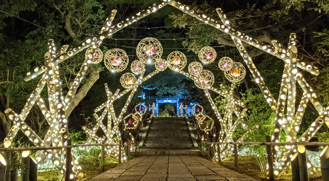 園内が柔らかな光に包まれる和のイルミネーションイベント。