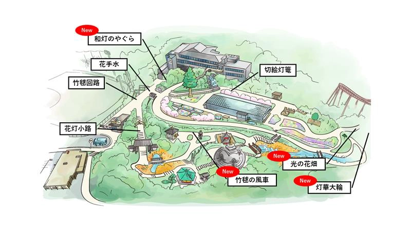 遊園地「よみうりランド」の華やかなイルミネーションとは趣きの異なる、和のライトアップをお楽しみください。